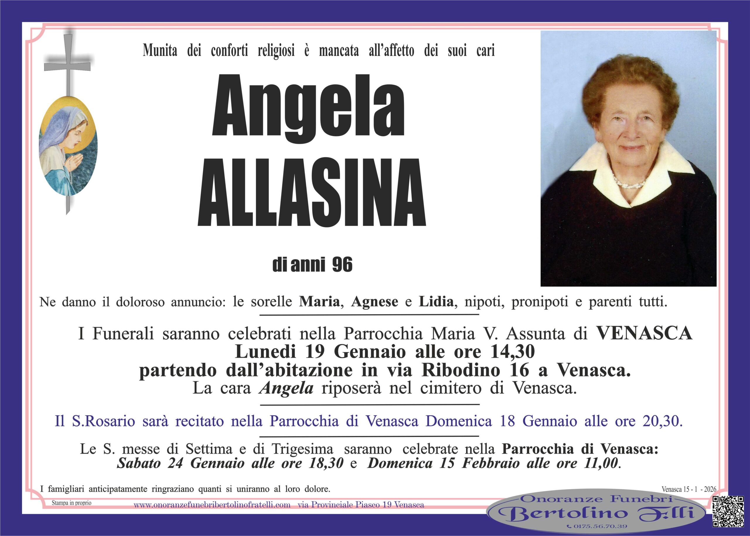 Allasina Angela Invia il tuo messaggio di cordoglio Questo sito è protetto da reCAPTCHA e dalla Privacy Policy di Google, che applica questi Termini di utilizzo. Ho letto e accetto le condizioni della privacy (OBBLIGATORIO)