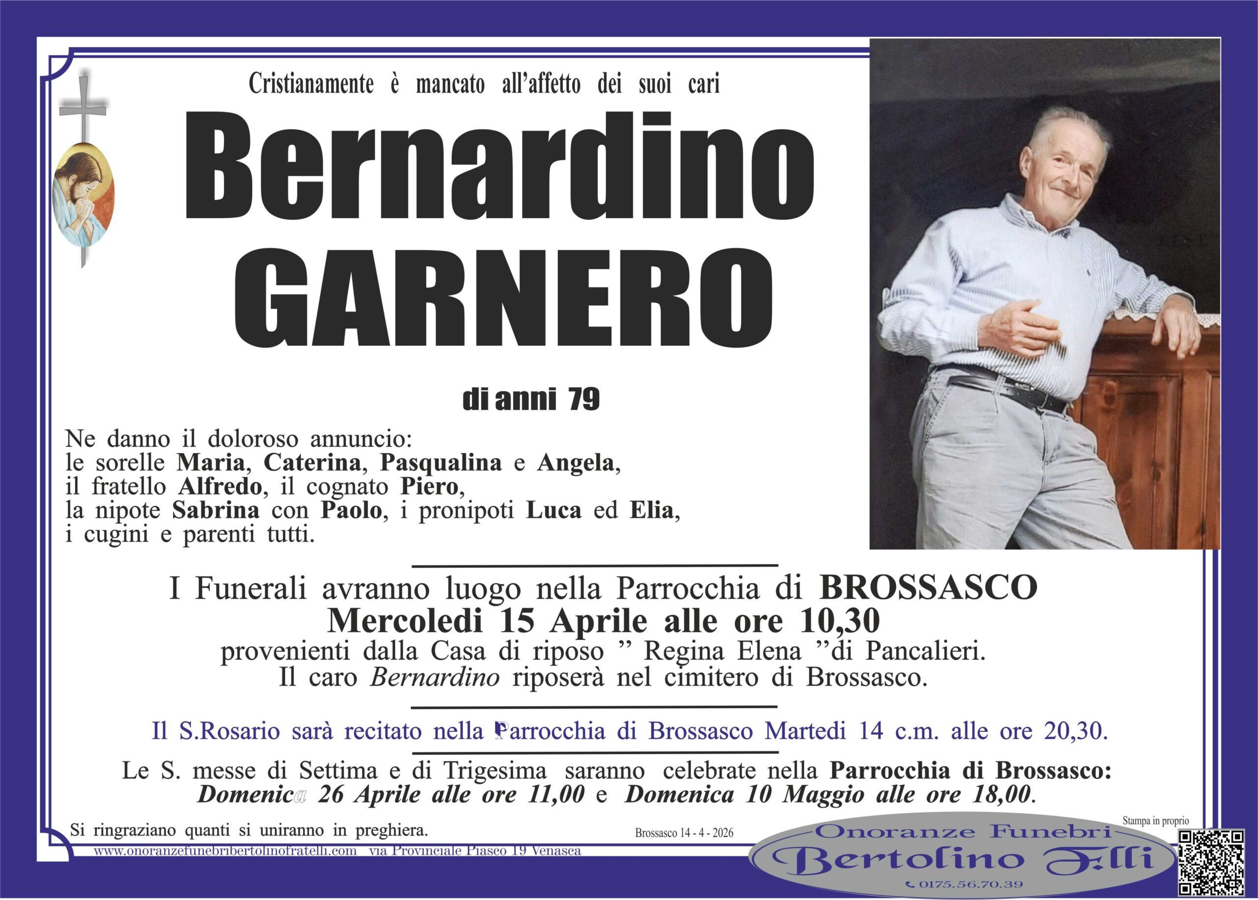 Garnero Bernardino Invia il tuo messaggio di cordoglio Questo sito è protetto da reCAPTCHA e dalla Privacy Policy di Google, che applica questi Termini di utilizzo. Ho letto e accetto le condizioni della privacy (OBBLIGATORIO)